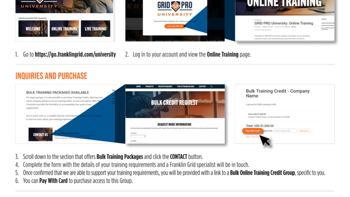 For larger groups, it is also possible to purchase Training Credits, allowing your entire company group to access training online, at your own speed. GRID PRO University provides the flexibility to accommodate the needs of any organization.